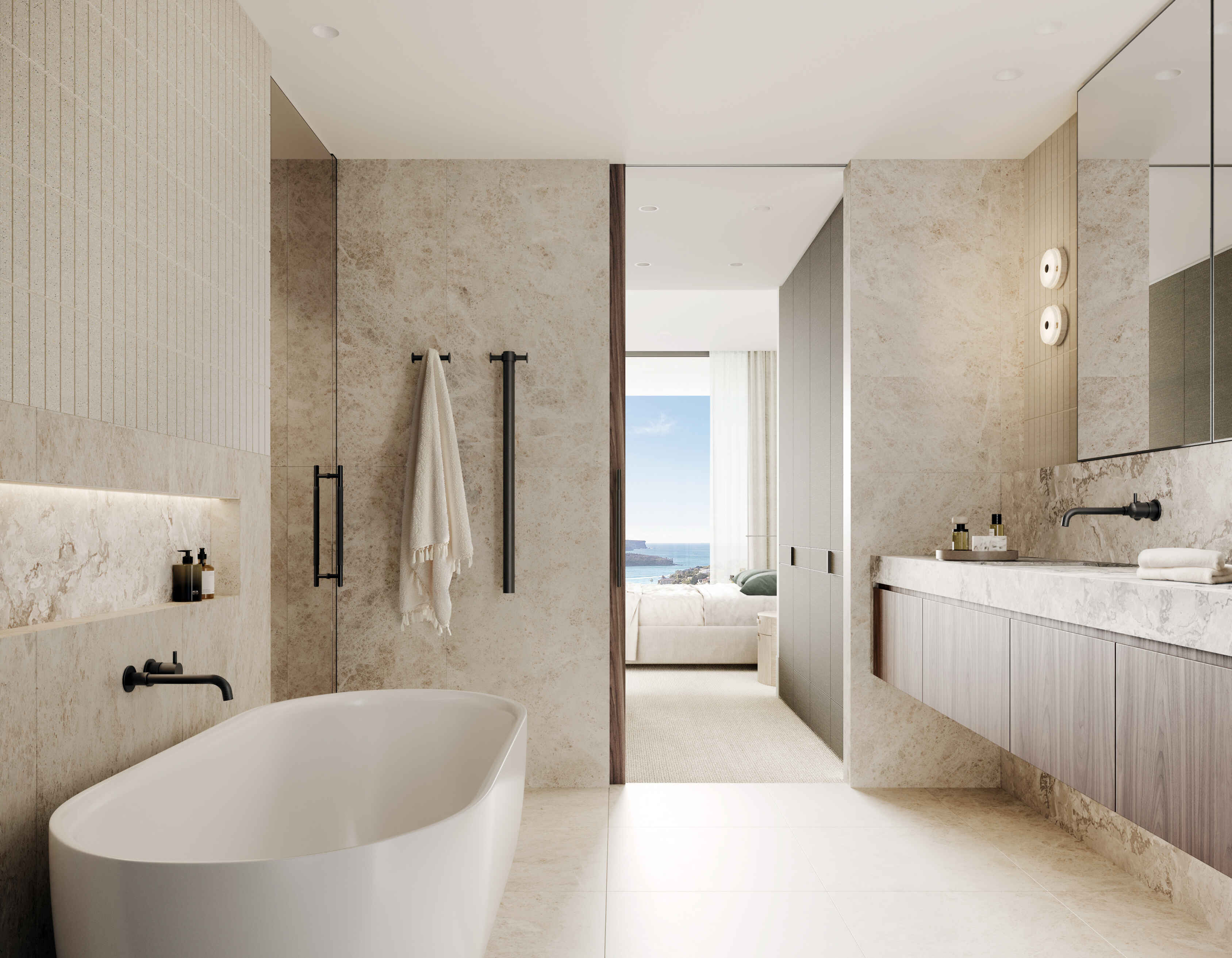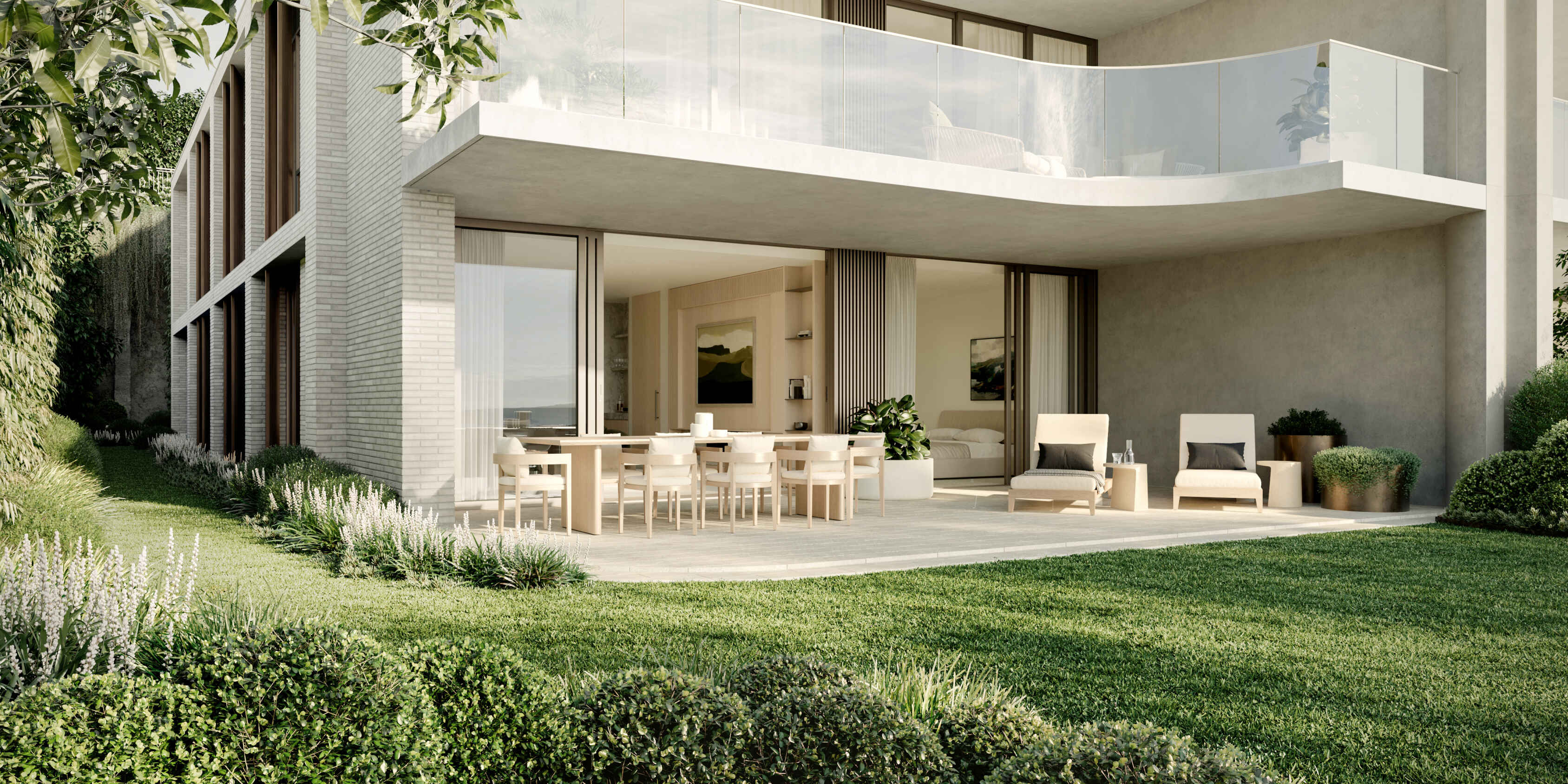 The site presented many questions. How could we use Mosman's natural landscape in all its rare glory to inform our design? We studied the natural movement and curvature of the land, plus its connectivity to the harbour. We made the creative decision to set these homes six metres below street level for an exclusive feeling whilst celebrating uninterrupted water views.