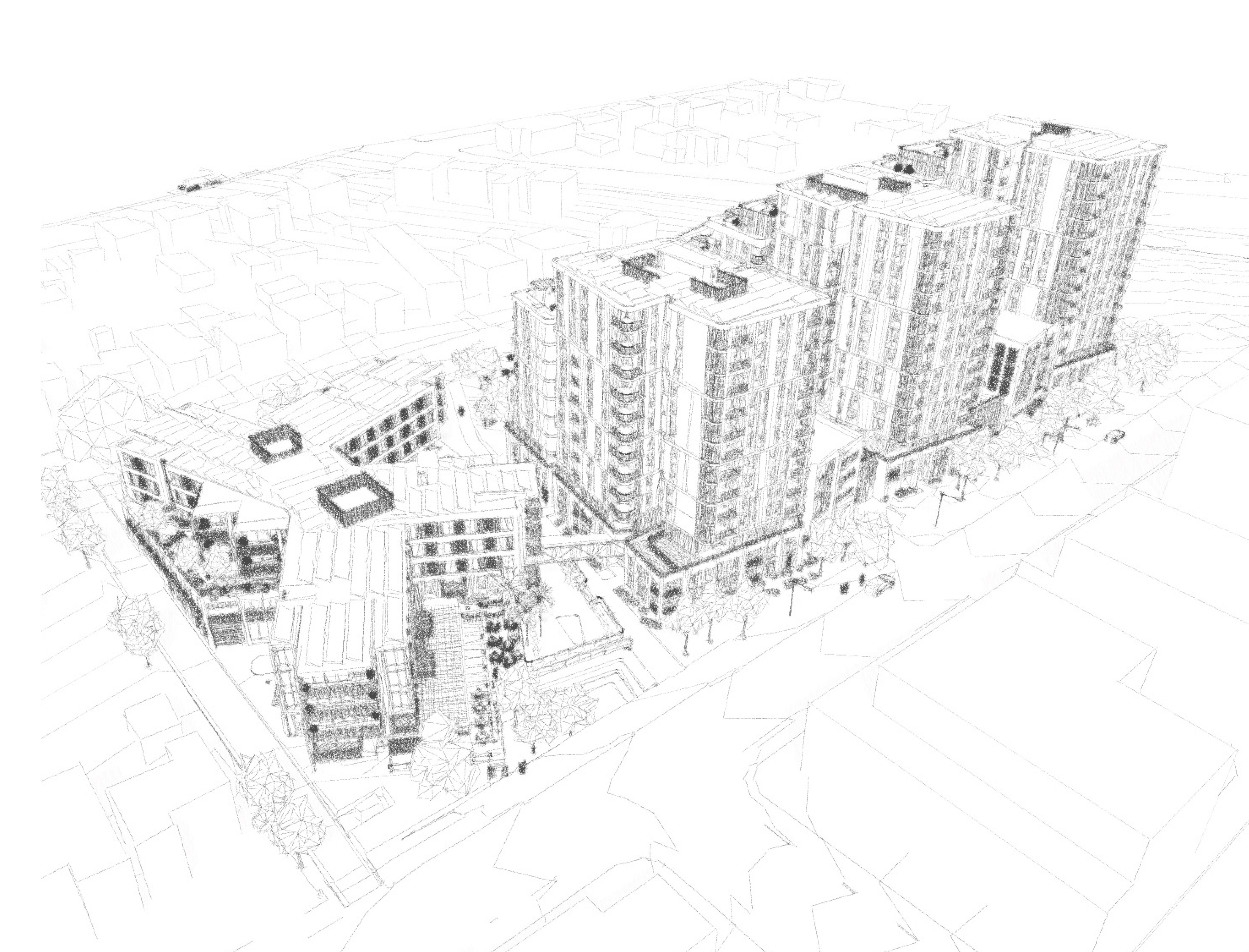 “To be transformed over several stages, our proposed design includes three residential towers with a mix of apartments and independent living units, co-located with a Residential Aged Care facility and community support services and facilities.”